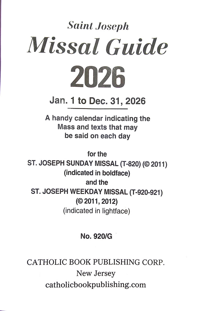 920/G A handy calendar that indicates the Mass and texts that may be said on each day.