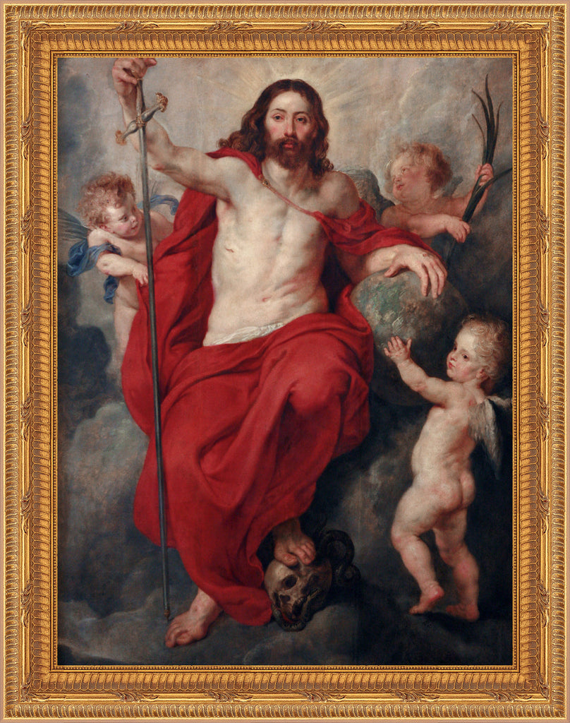 TEX-9577 Beautiful framed image of Christ Triumphing from the "Textures" collection by Royal Art & Design. What are "Textures"? "Textures" are high resolution images printed in eight colors on fine art paper. The look is a bright, crisp image with a watercolor elegance and a three-dimensional look. Mounted on hardboard and custom framed with a gold colored frame. Frame is 16" X 19", and the image itself varies from 8"-11" x 11"-14" depending on the image. Artist: Peter Paul Rubens