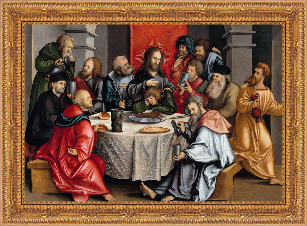 TEX-9872 Beautiful framed image of the Last Supper from the "Textures" collection by Royal Art & Design. What are "Textures"? "Textures" are high resolution images printed in eight colors on fine art paper. The look is a bright, crisp image with a watercolor elegance and a three-dimensional look. Mounted on hardboard and custom framed with a gold colored frame. Frame is 16" X 19", and the image itself varies from 8"-11" x 11"-14" depending on the image. Artist: Hans Shoyfelin
