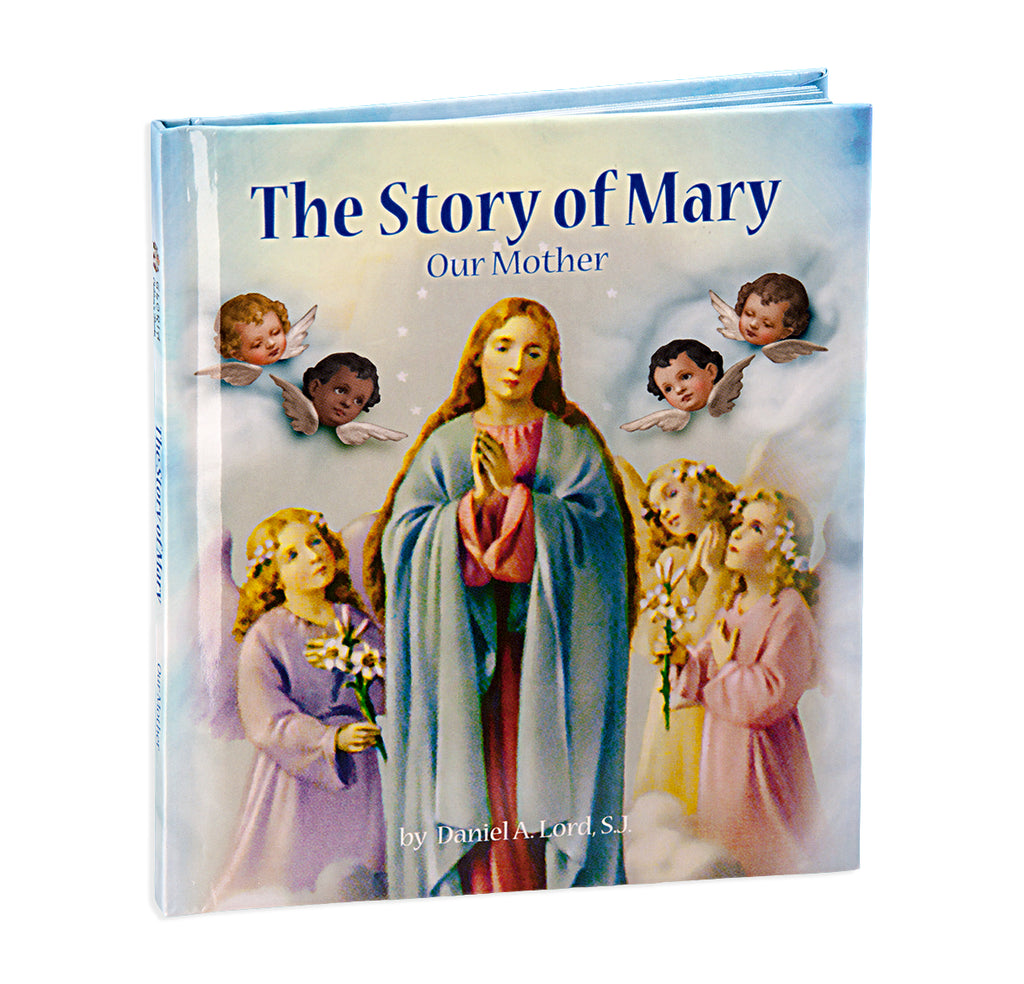 2446-200 Our beautiful "Gloria Series" Children's Book will be treasured and passed down for generations to come. Our quality Catholic children's book is beautifully-illustrated in full-color. These sacred images may bring back beautiful memories from childhood. Our Catholic "The Story of Mary" story and instructional book is written by the famous Catholic author Fr. Daniel Lord, S.J. This book has a light blue hardcover with a beautiful illustration of "Mary and Children with Angels" floating on clouds. Great book to have in your classroom, school library, CCD class, children's prayer group, and children's section in church during Mass. Makes a great gift for a Baptism, Christening, Communion, Birthday, Christmas, and Easter. Size: 5-1/4" x 6".